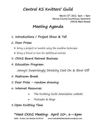 Join us for the March Knitting Guild meeting! March 13th from 6-8pm at the Harvey County Courthouse (Newton, Main & 7th streets).