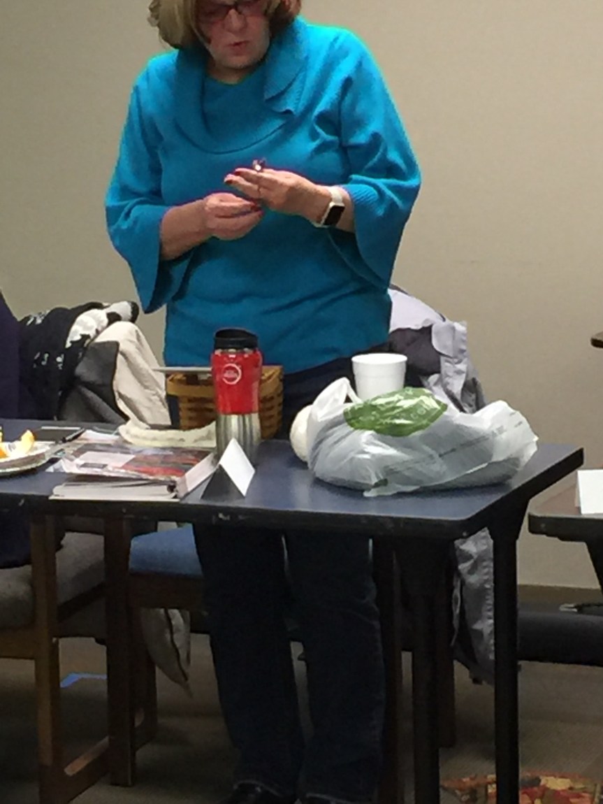 Our program will be Lever Knitting, also known as Irish Cottage Knitting, the way the Yarn Harlot knits, and several other “aka’s” I can’t remember right now! The supplies you will need are yarn and long needles (14″) to get gauge. We will have some extra needles if you need them (not sure if we will have enough for everyone). I, for one, am super excited!